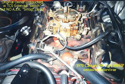 Mr 70, Both 1970 L-34(1800 built)and L-78(600 built) Camaros had the TCS system. The removal of an L-78 engine and/or the A.I.R. "Smog" apparently would leave NO evidence I can think of. Without a Norwood trim tag, L.A. build sheet, POP, Window Sticker, Invoice or 6500/7000 Tach I dont know how to PROVE 70 L-78 Camaro. I'm going to say that the 4 spd L-78 was standard with 3:55 gears while the L-34 4 spd was standard with 3:31.....but obviously subject to RPO changes.....all SS's and Z-28's had 12 Bolt (LAST Year)