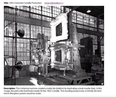 This is a Keller machine - http://i1016.photobucket.com/albums/...t/Assembly.jpg It is a tracing/duplicating machine; the pattern is located at the top, and the bottom portion is machining a die or a mold, in this case. The pattern is lined with masking tape, to provide roughly .007" additional material, which is then polished out by hand. My Dad, trained as a tool & die maker, called masking tape "Keller tape" in casual conversation for this reason. You'll note the pattern in this case is the original mold for the front clip of the '53 Corvette. The photo was taken at the GM Assembly Research Center (GMARC), located on the north east corner of the Flint Assembly property, and is also where the first 300 Corvettes were assembled. http://i1016.photobucket.com/albums/...-1953group.jpg http://i1016.photobucket.com/albums/...vette-1953.jpg I worked in this building off and on early in my career, but sadly this building is no longer there. K |