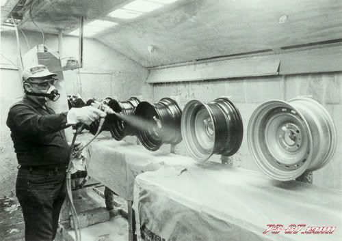 Painting rally wheels - these happen to be truck wheels, but the process is the same:
