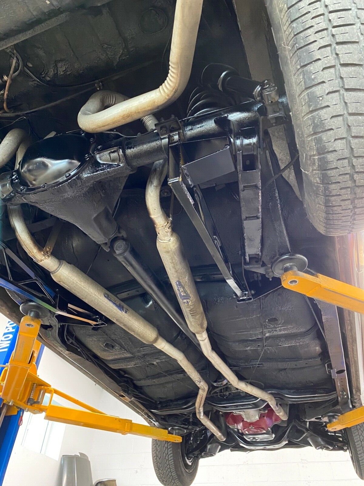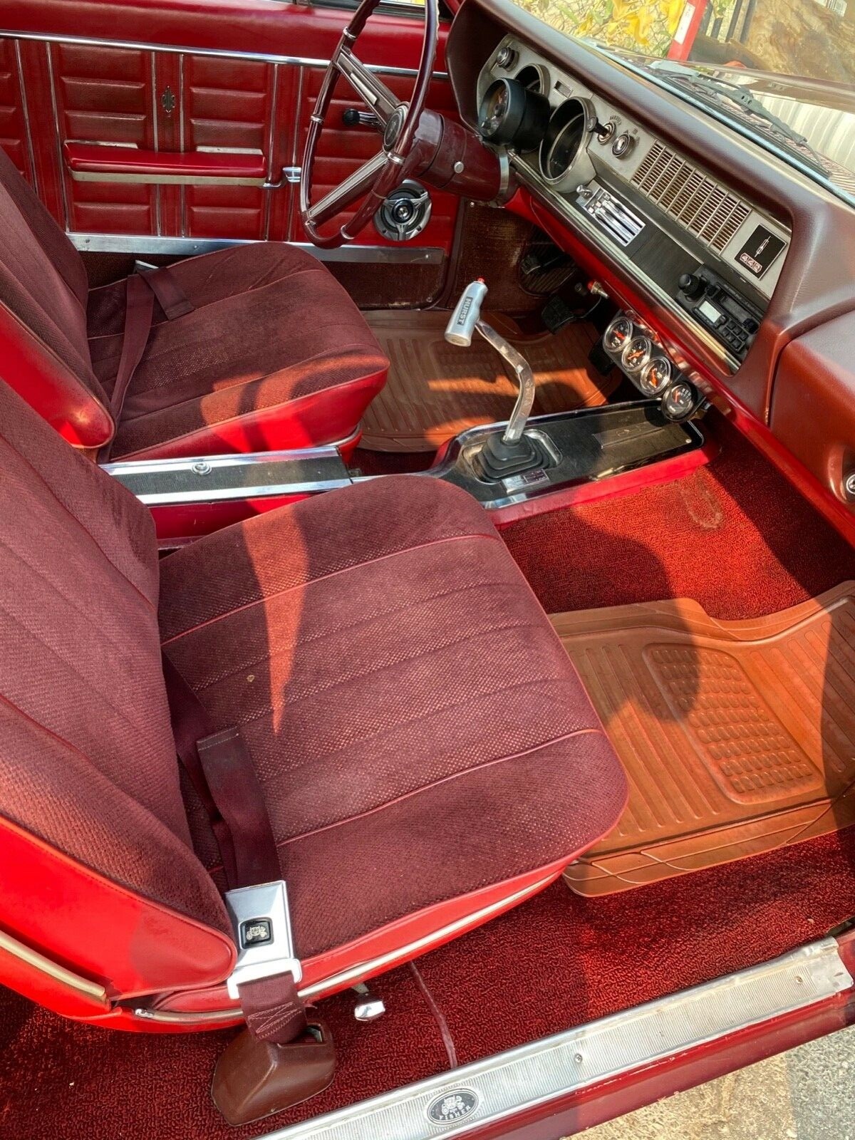 Pretty cool car here - looks like a lot of the muscle cars I saw growing up in the 1980s...original seats with velour inserts, ladder bars, dual quads, etc. What's most interesting about this car is the change to a '66 front headlamp arrangement, as well as retaining its original protectoplate after all these years and street-machine mods. Cool car....