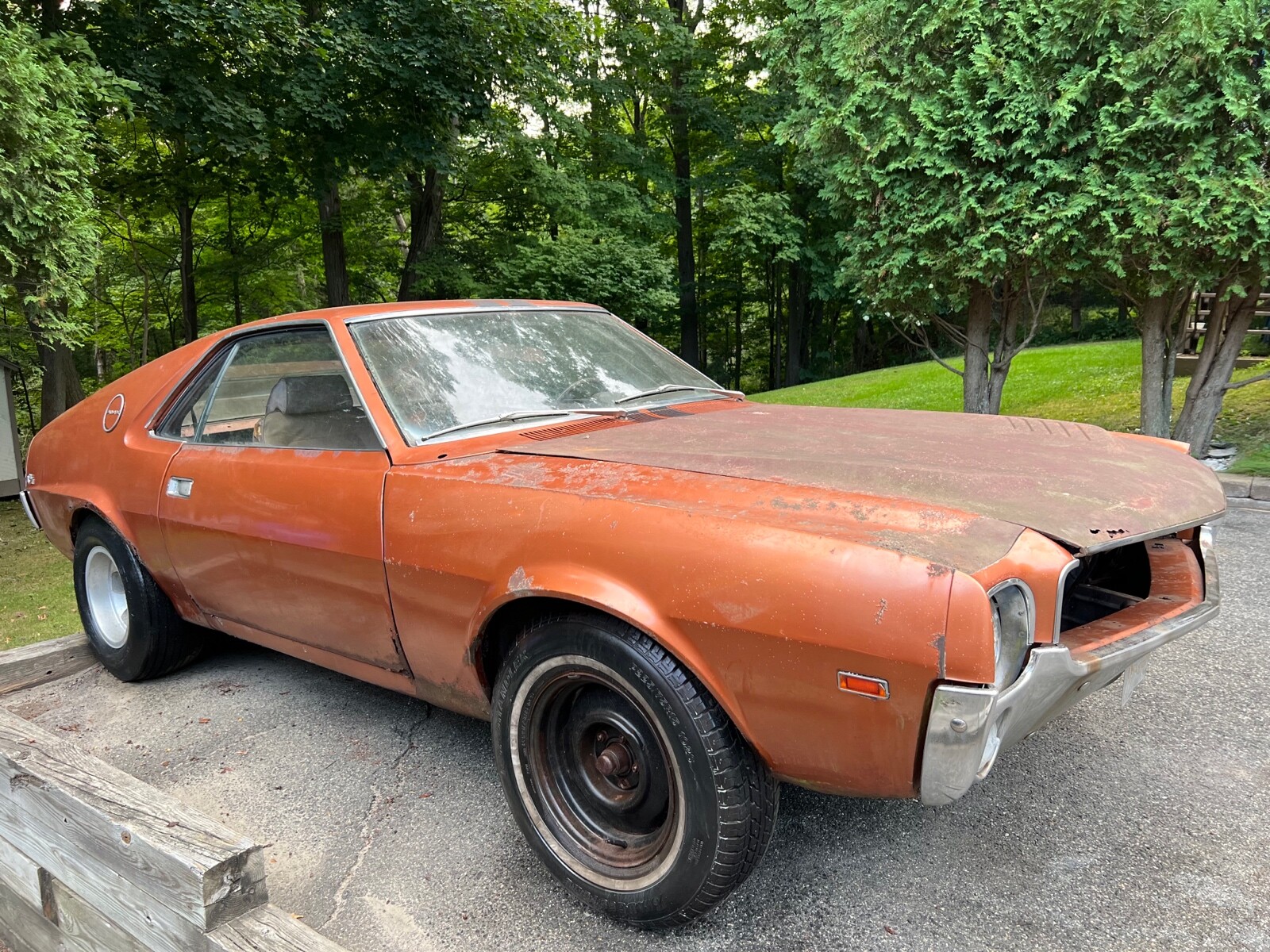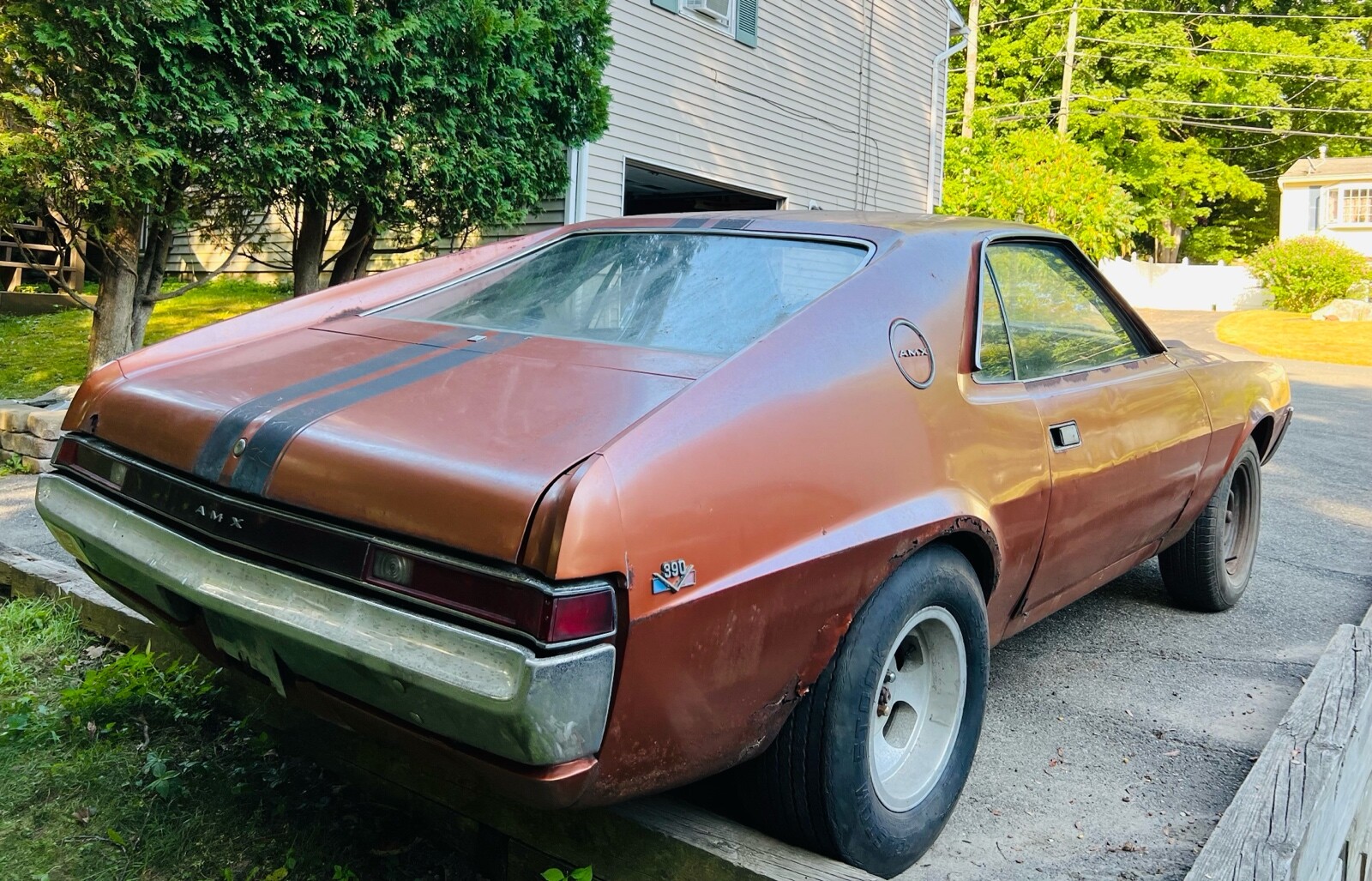 Unless parts are more plentiful now than they were 30 years ago when I was moving from these to raising my family, this car validates the saying “buy one that’s done”. Full quarter panels would be next to impossible to find as I don’t think the available patch panels would cut it on this one. Full NOS quarter panels were difficult to find years ago due to AMC scrapping the dies around 1972.