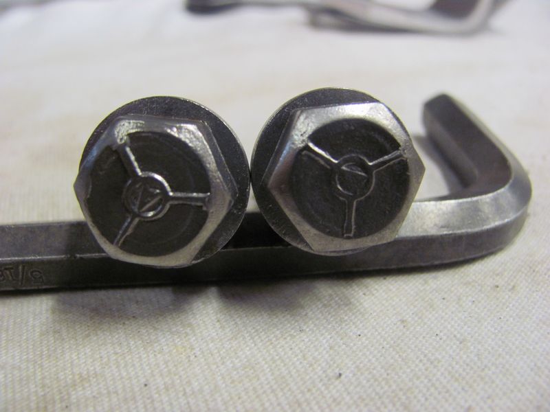 VERY NICE SET OF 68-72 ALL small block intake manifold bolts (12 C) lift brackets (K and CM stamped) and lift bracket mounting bolts 2 (Flat head flanged A's)