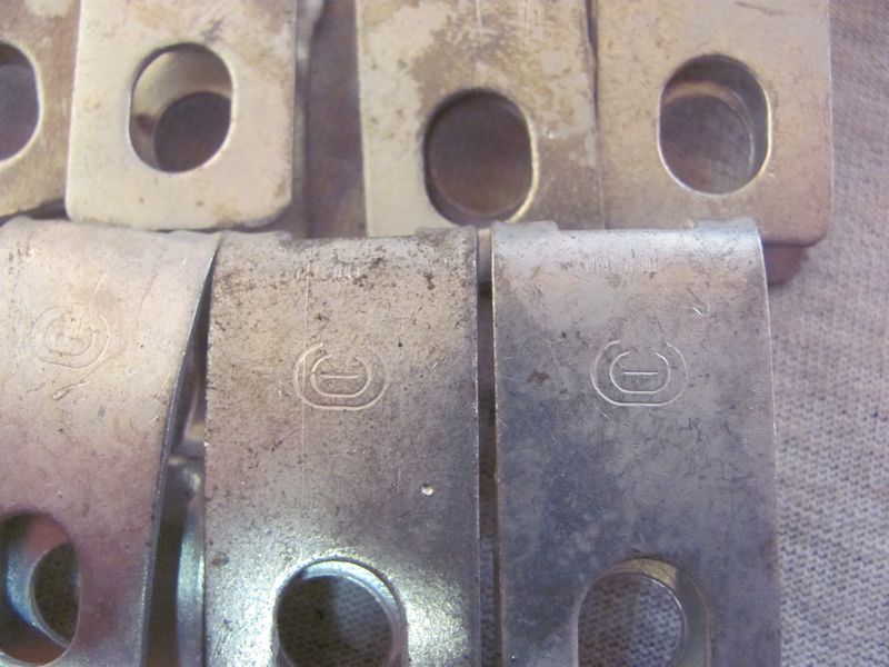 8 very nice original restored Fuel line clips for Camaros Chevelles and Novas with a 3/8" fuel line and 1/4" return line. Stamped I inside 2 C's. PIT FREE