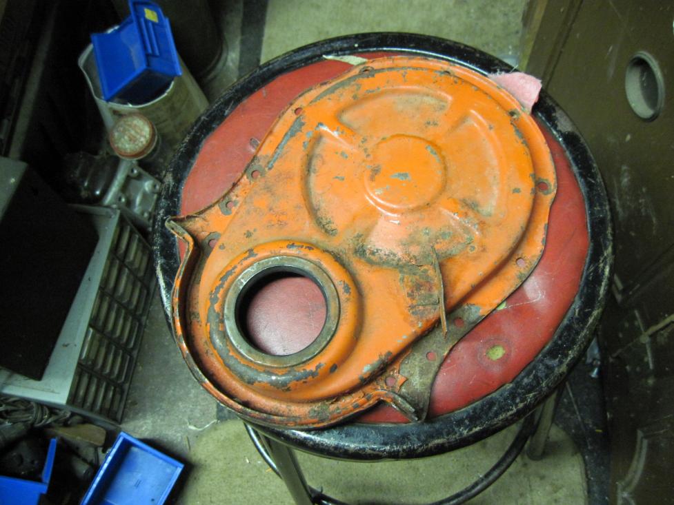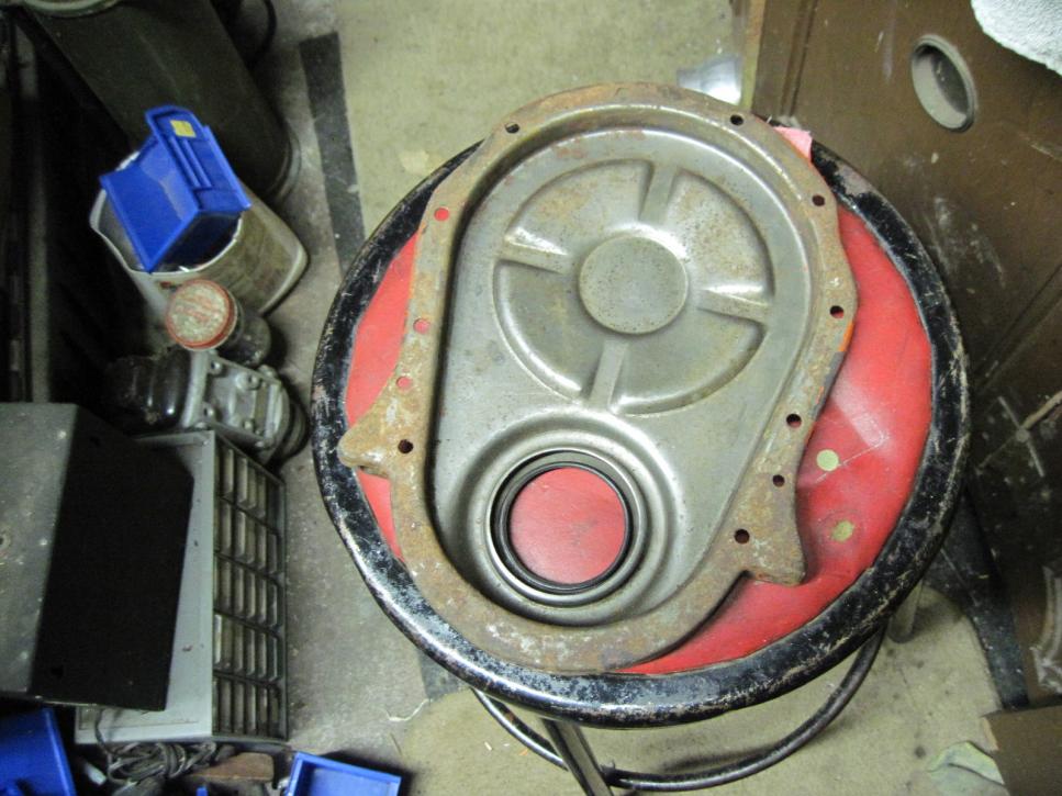 hi performance 8 inch timing cover. Nice and strainght with no extra holes. This unit is dated 15 0 which is the 15th week of 1970. I would think this is sometime in early April 1970. There is some surface rust and will need to be cleaned and painted.