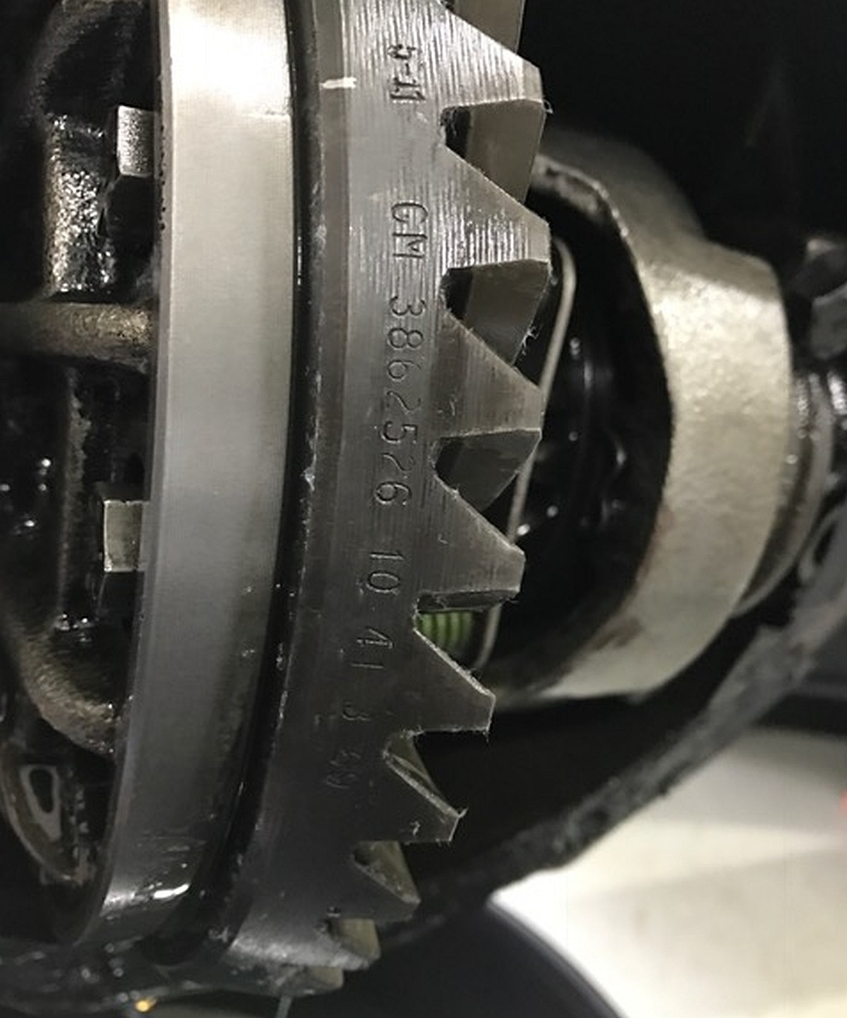 This assembly appears to have the original GM 4.10 ring and pinion (date code on ring gear is: 3 69 Part number on ring gear is: 3662526).