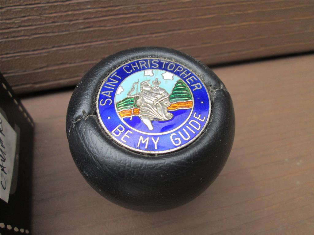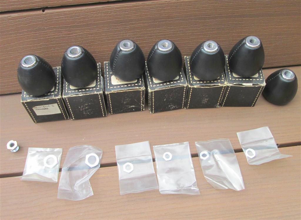 Vintage New Old Stock AMCO leather grained shifter knobs. These are usually marketed as being factory accessory items that were sold on cars when new. While these knobs are aftermarket, I imagine they were sold over dealer parts counters and on new cars when added by the dealer.