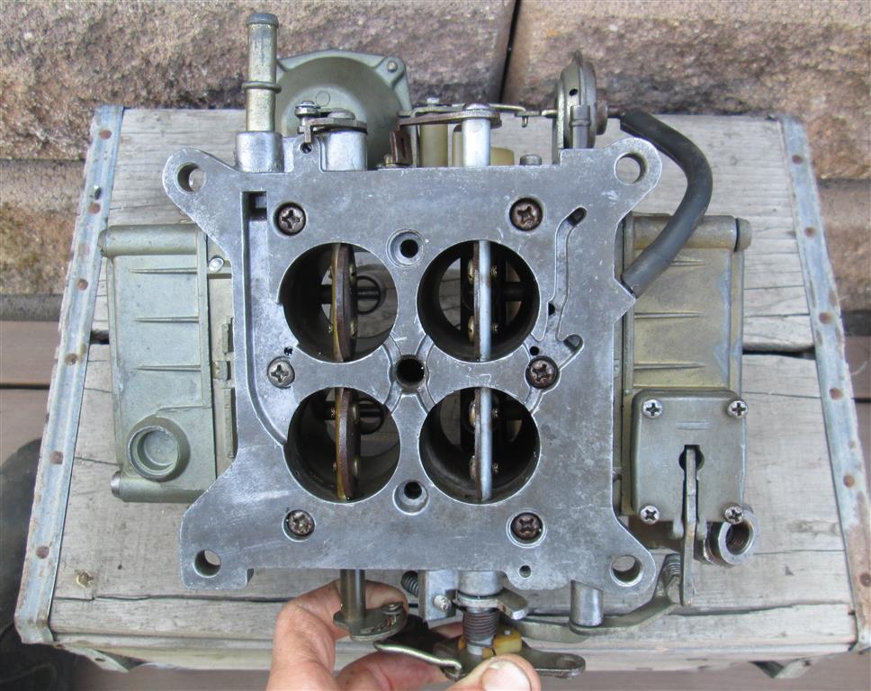 This carb is in good original condition. It is totally complete and all parts move freely. The coloring is very nice as shown. The front metering block is stamped 4658 and the rear is 4099 as shown. I removed the bowls to shown the internals are as clean at the externals. This car would be great for a survivor as is or could be restored for the nicest of cars.