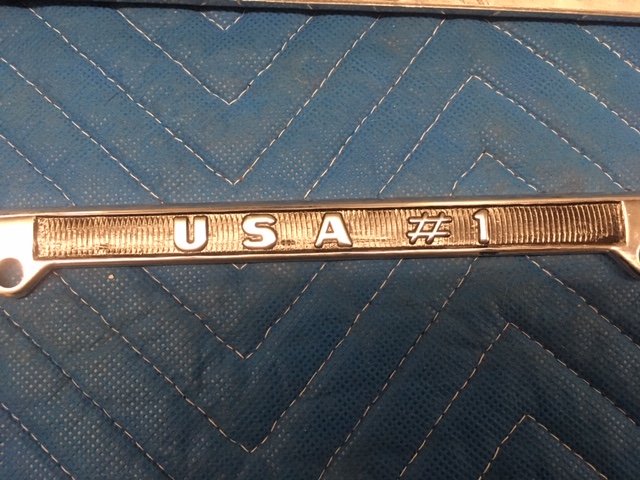Real nice pair USA plate frames $225.00 free shipping Thanks Dave.