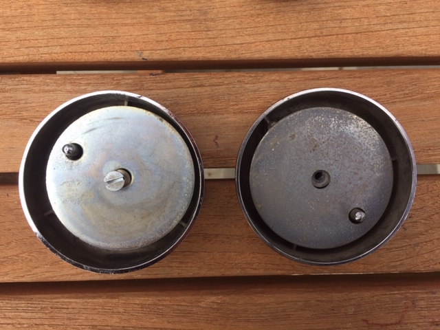 Set of 4 Cragar no R caps. Blue color in center is very nice. Missing 1 screw. Reflections in chrome are trees and clouds. One has some peeling on the side which is shown otherwise I think while not perfect (some very fine marks in chrome) better than most. Happy to shoot some more detailed photos if you provide me email or phone. $135 plus shipping. Ad should be in classifieds will try to move or relist.
