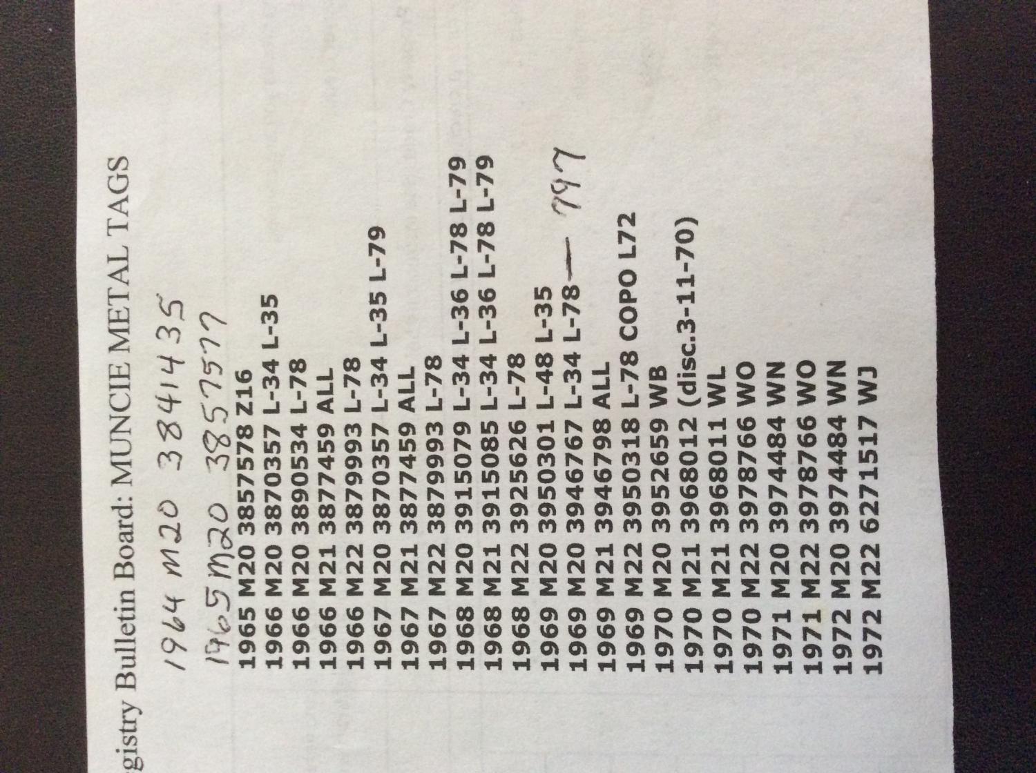 1969 M21 3946798 All including Z/28 $75 shipped free