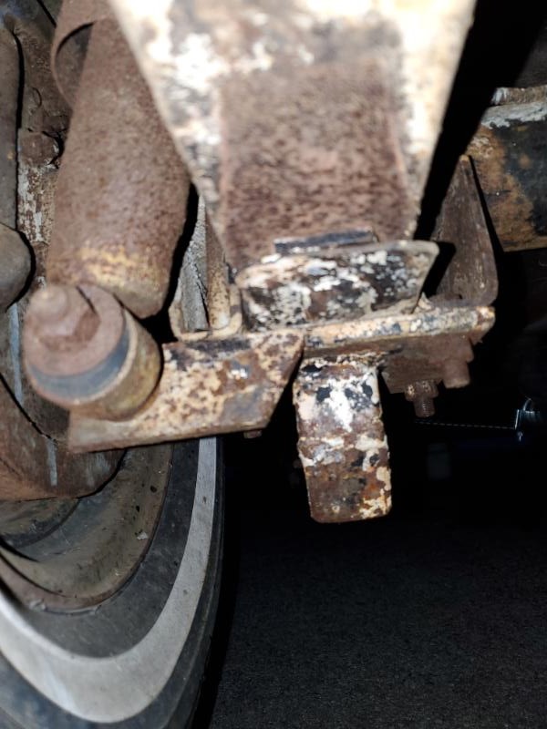 The under carriage; rear, gas tank, traction bars, subframe and control arms were even painted white and still can see remnants of the white paint that I have been scraping off.