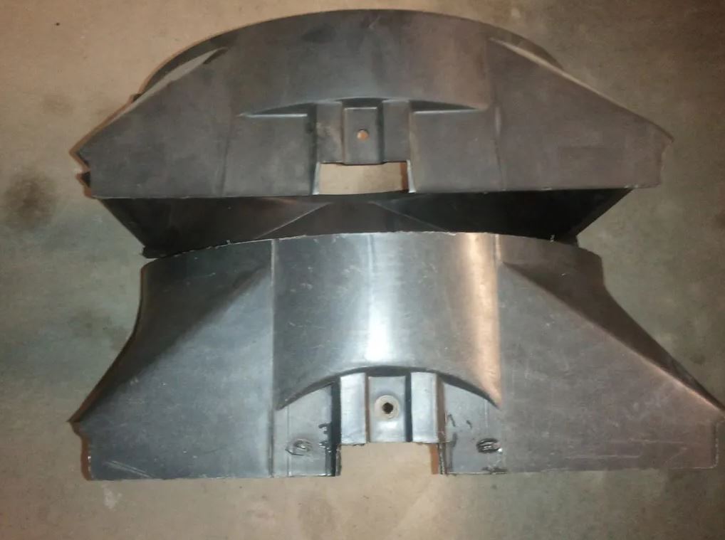 Thanks to Chick for the last photo posted here, copied from his mega build post at CRG, thank you! Top is the OTC unit, original below - notice the curve of the molding in the original and obvious mold marks. You want an original on your Camaro. The "caution fan" stickers won't fit on these original pieces...