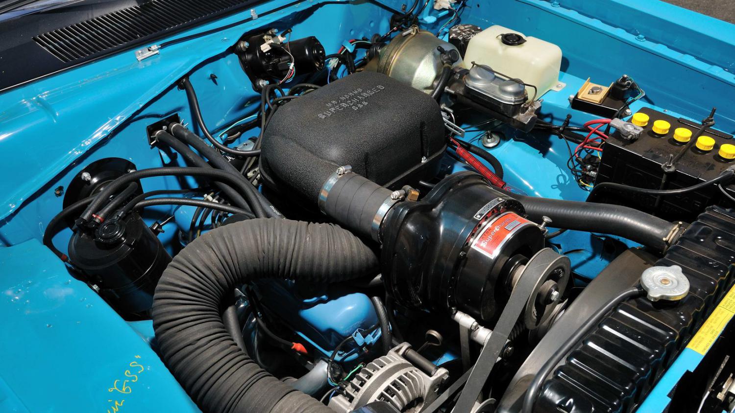 "Mr. Norm, ever the performance promoter, rightly figured the low-compression 340 was ripe for forced induction. Just pack more air into the manifold and feed in extra fuel, and you'd be good for one last go-round. So this juvenile delinquent was further corrupted by a centrifugal supercharger, supplied by Joe Granatelli and installed by hot-shoe Gary Dyer. With a beltdriven Paxton puffer, plus a modified fuel pump and pressure regulator, the output ballooned to a somewhat respectable 360 horses. Compared with its fellow gangstas, that number might seem a bit like bringing a knife to a gunfight. But there was a key formula in its favor: the power-to-weight equation. Like the L79-powered Chevy II, the Demon was a cookie tin stuffed with trouble. Stomp the go-pedal, and you could catch those burly big-blocks napping at the line."
