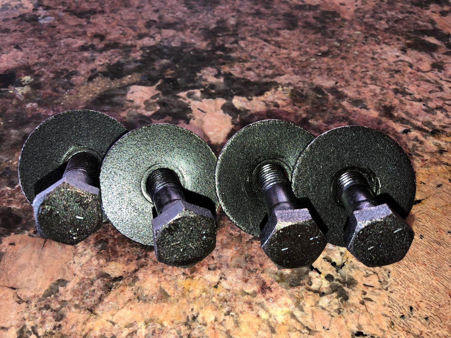 4 very clean zinc plated RBW bolts with 4 nice washers. These bolts were stripped tumbled and then baked before plating.