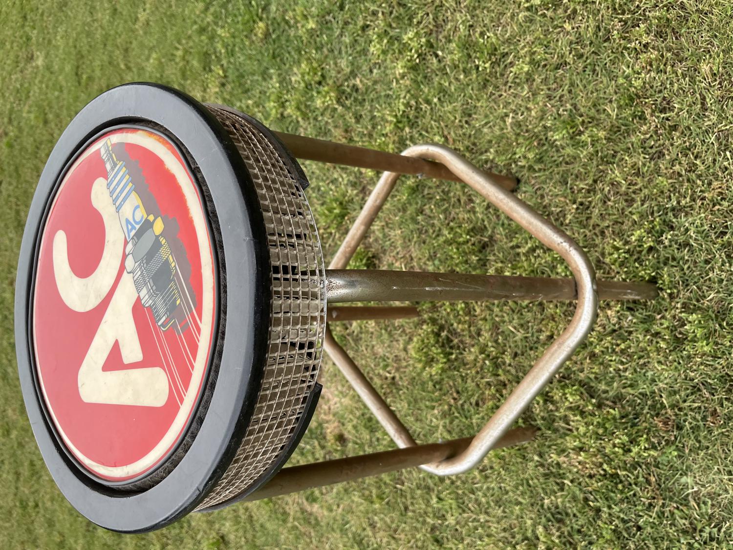 An AC Delco promo? stool here that has some obvious age and is meant to appear as the coveted square mesh air filter element.