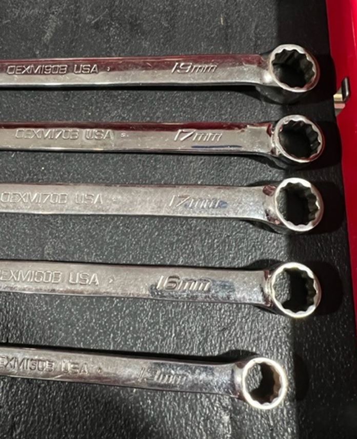 For sale here is a lot of Snap On Metric long handle wrenches. I'm calling them gently used. Overall presentable condition. 19mm, 17mm (2x), 16mm, and 13mm. Would prefer to sell as one lot. Great for a starter set without breaking the bank. $60 shipped to your door OBO.