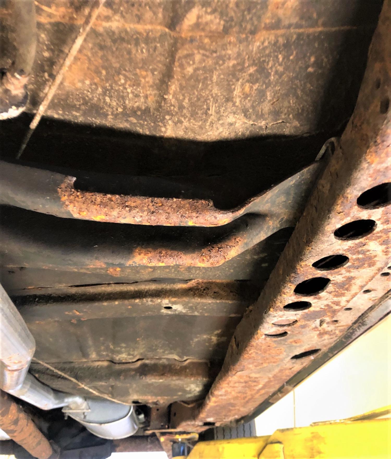 This is an interesting car, for starters it was ordered with a heavy-duty frame. A few other oddities are a buick/olds two-piece drive shaft and a transmission mount with stud's verses bolts. Also, it had a mix of undercoating and surface rust to clean up.