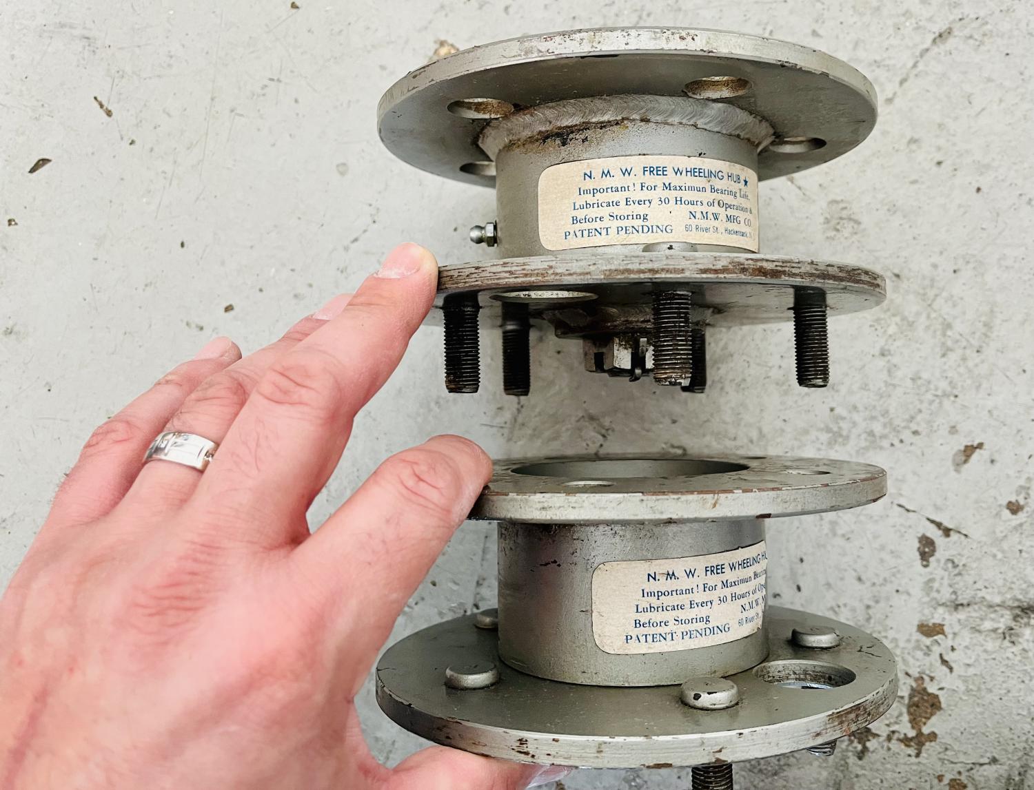 I have an NOS pair of early NMW freewheeling tow hubs, part number FWH-102. These are GM 5x4.75 bolt pattern. The original paint and stickers are in excellent condition. Very hard to find these early versions. $375 plus shipping.