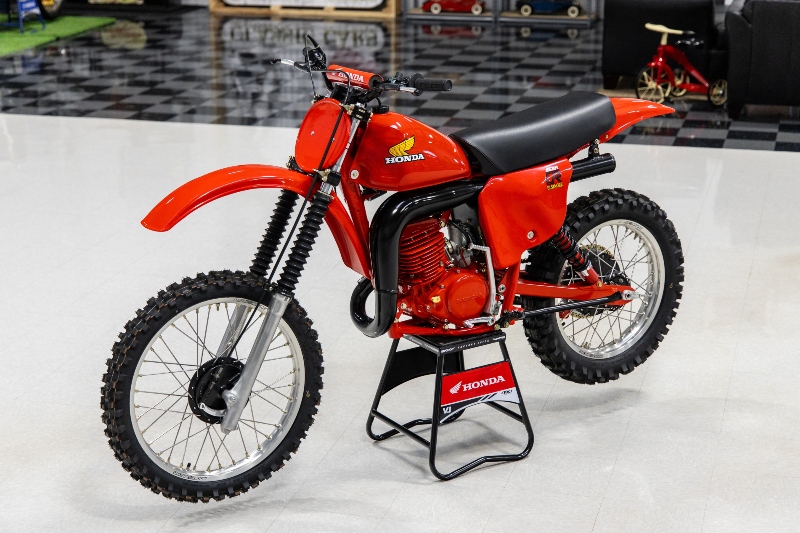 This 45-year old 1979 Honda CR250R Elsinore is an outstanding example of the ultimate evolution of the aluminum tank, air-cooled Elsinore's. This example was found as an original bike with low hours that was the perfect candidate for a restoration. It was the product of a meticulous restoration by Matthew Connor of Cycle Art Fabrication located in Ballston Lake, NY. The entire bike was completely dissembled and all the parts were inventoried. All of the original steel and aluminum components with the exception of the gas tank and exhaust were powder coated. The gas tank was cleaned and re-painted in the correct color of Titan Red which looks stunning. The original engine was fully disassembled, inspected and rebuilt. The crankshaft was rebuilt along with new rod bearings, main bearings and transmission bearings. It has a stock bore with Wiseco piston, Boysen Reed petals, new clutch plates and springs. The engine received a fresh coat of paint and is fed with a KEIHIN 36mm carburetor. It retains almost all the original factory hardware it came with. The hardware was cleaned, polished, zinc plated and yellow chromated to match the way it looked from the factory. The original silencer was cut apart, repacked and welded back together. The engine is coupled to a 5-speed manual transmission. The seat has new foam and cover. It was outfitted with all new VMX Racing plastics with factory correct decals. It's equipped with Moose Racing modern wheels with stainless Buchanan spokes and nipples. The wheels were re-laced and trued by Motorsport of Clifton Park, NY. The wheels are wrapped with new Dunlop Sports tires that are 80-100-21 on the front and 120-90-18 on the rear. The hubs were powder coated and the wheel bearings, seals and brakes are new. The sprockets are new and it has a new Factory Spec 520 gold chain. Everything was restored or replaced such as the handlebars, grips, levers, kill switch, front forks, rear shocks, cables, etc. A new Factory Effex handlebar pad and stand are included. Frame number #CR250R-2109604. Engine number #CR250RE -2109891. From the MS CLASSIC CARS Collection.