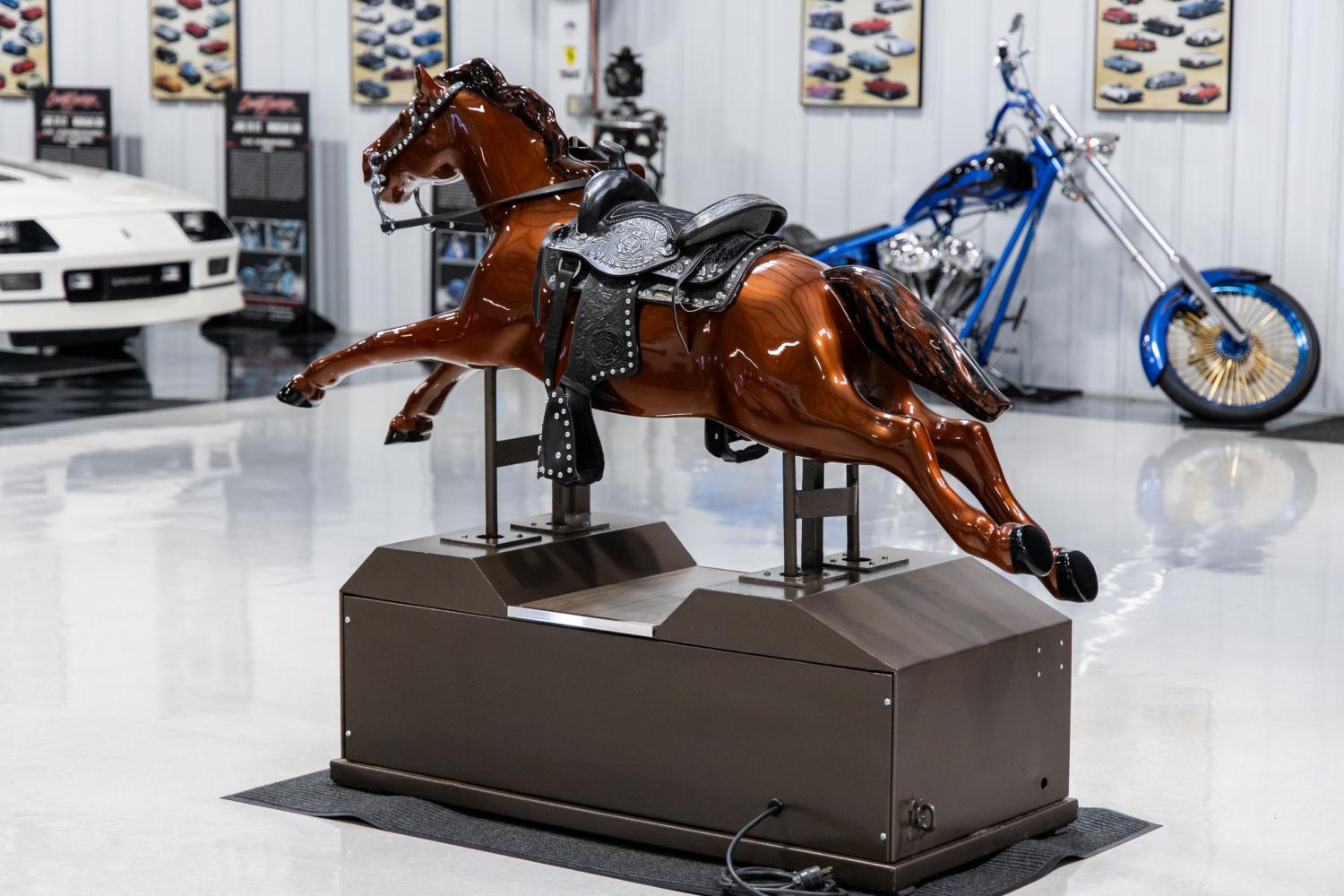 This gorgeous 1952 Bally Champion Horse Coin Operated Kiddie Ride is a great display and conversation piece. This model is desirable among collectors and enthusiasts because it's considered a full-body horse. The Bally Manufacturing Company produced the “Ride the Champion” Horse in 1952 at their facility located in Chicago, IL. The name “Ride the Champion” comes from the popular T.V. show with Gene Autry's horse, “Champion the Wonder Horse”. Bally advertised the kiddie ride to vendors as “the greatest money maker in the entire amusement industry”. This realistic western horse was sturdy with a trouble-free mechanism and slug proof coin mechanism. The real western saddle with a safe low-speed start provided life-like riding action. These rides were placed all across the United States and commonly in front of grocery stores. The ride provided young children an imaginary horseback journey to the Old West. The ride crated great ever-lasting memories and is a true piece of Americana. This example was the product a show quality cosmetic restoration. It was completed in 2023 and was a display piece until it was purchased by MS CLASSIC CARS in March of 2024. This is the first time it's been listed for sale.