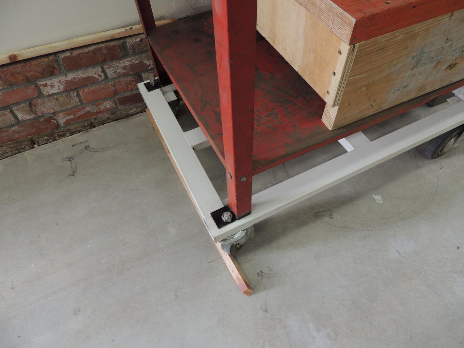 Of course with these giant casters, it now sits 9 inches higher. So, I made a little step stool out of scrap lumber. I don't throw much wood away... it has to be really small scraps before it hits the trash can. Plan to put an anti fatigue mat of some sort on it. Yeah, Lynn that'll do it. A little foam rubber and no more fatigue. Keep telling yourself that. Well, probably won't hurt.