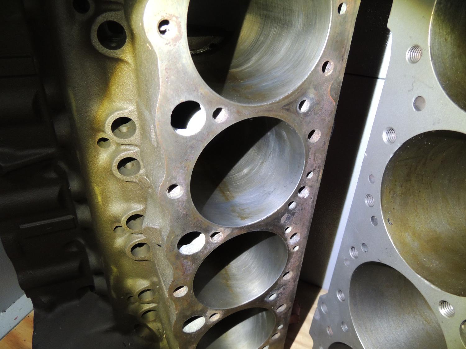 CE block is 010 casting number with a casting date of B 11 0 (Feb 11, 1970). Pics of casting number, casting date and assy stamp are now included, along with pics of the cylinders. As I said, you could probably drop a set of .030 pistons in and be fine. They still have hone marks showing and no ridge.