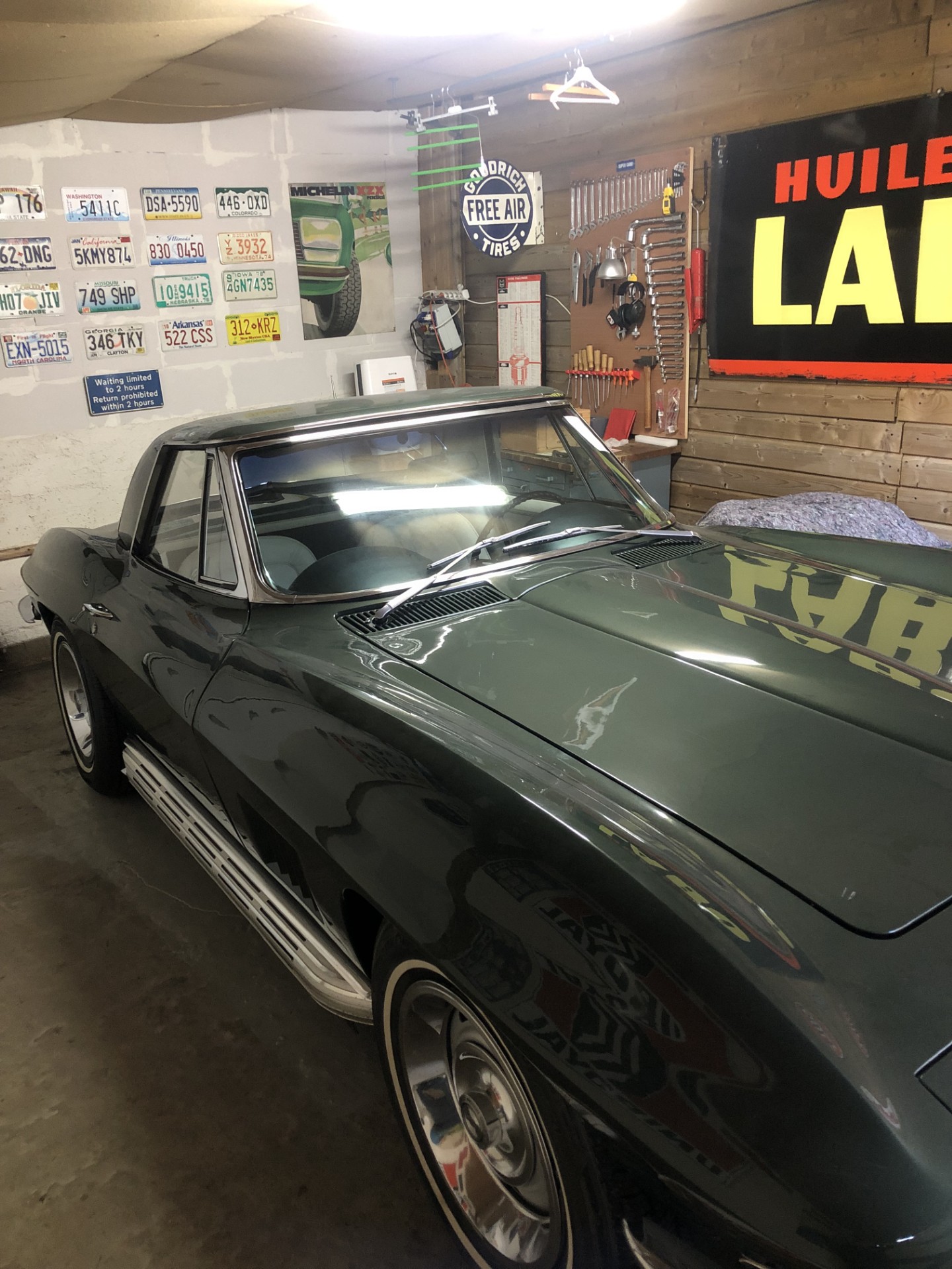 One being this 67 roadster I just bought. Nice all born with numbers car, Goodwood Green with a black and white interior. M20 wide ratio 4 speed, 3.36 posi diff. 2 tops, AM/FM, P/S, P/B and telescopic wheel. The car originally came from West Virginia (as documented by it's POP). The car is reported to be a legit 20k mile car. The car retains it's original riveted ball joints and factory installed idler arm. It still retains all 5 original DC wheels.