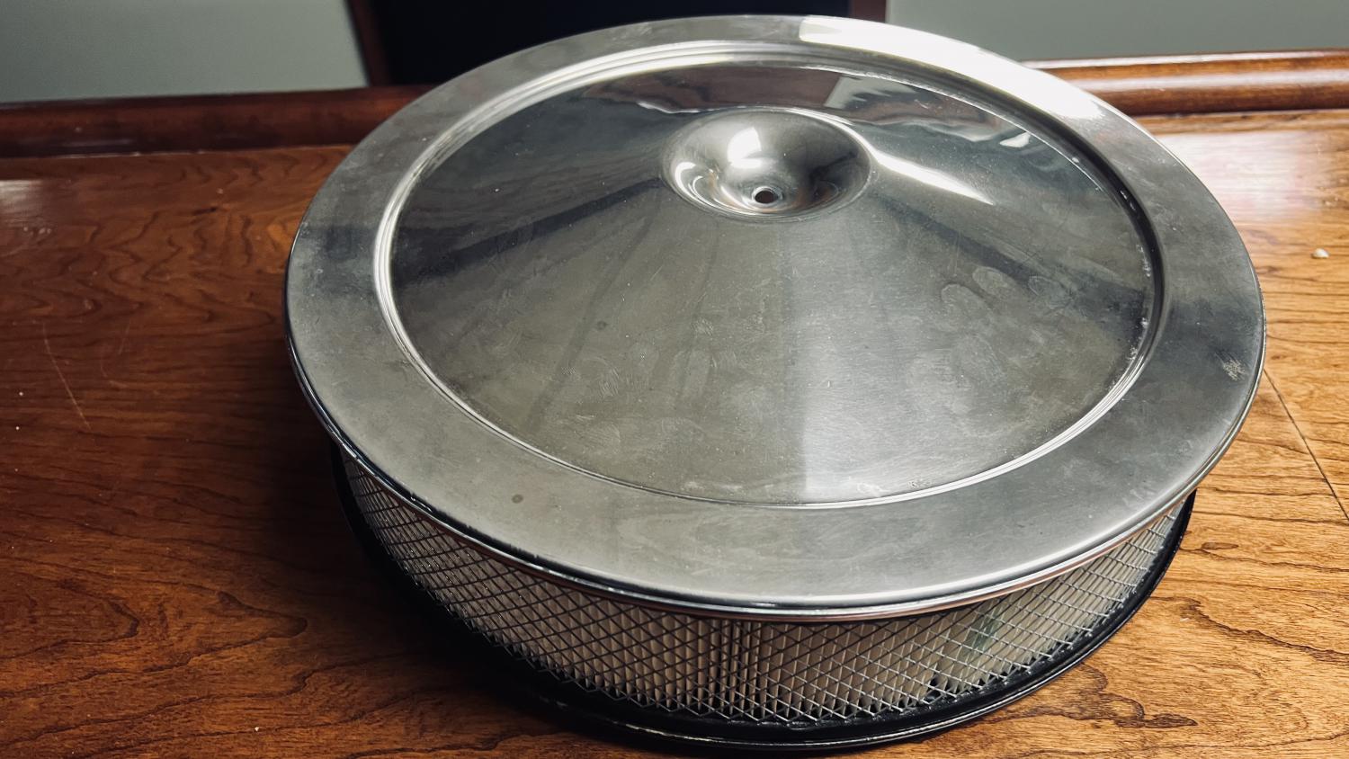 Rare and hard to find original open element air cleaner. This is not to be confused with the later 6423907 air cleaner, this is an “assembly line survivor” open element that would have come on the 1969 427/390 Corvette, and the 1970 Chevelle SS 402/454 Ls5/Ls6. It shares the same 90 degree tube as the dual snorkle air cleaner. If you have SS on your buildsheet, this is the air cleaner you would have had. Original lid still has the silkscreen AC service instructions. Absolutely no pitting at all. $675 shipped in the CONUS.