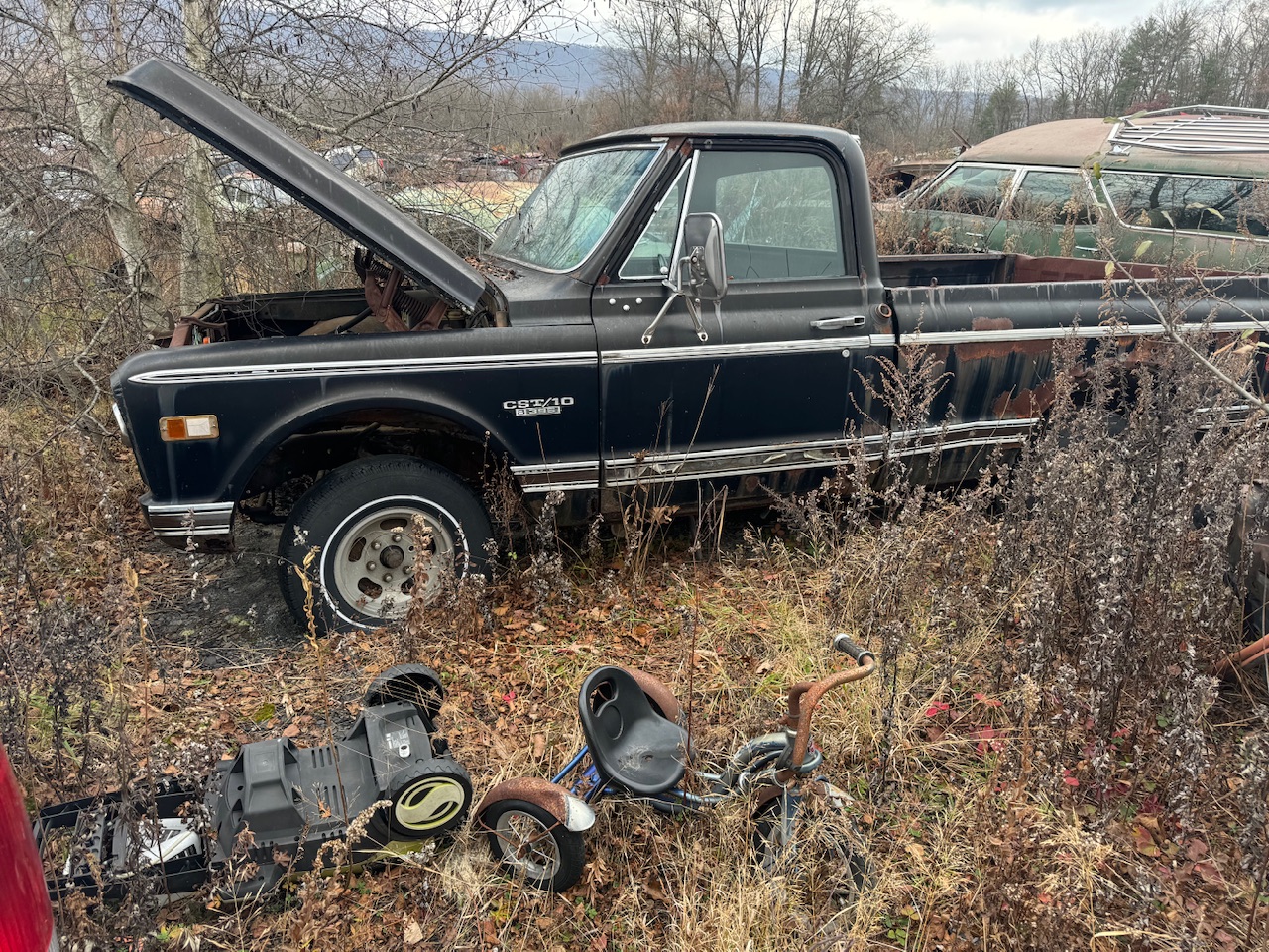 I have had a fetish for '69-70 Chevrolet C10 pickups my whole life and have owned several '67-72 models. I had a very clean '69 to build and restore when we moved 5 years ago, but sold it in 2020 to finance finishing the inside of the bare pole building into a heated shop. I bought 2 '67's a couple years ago, but just can't get into that front end like I do the '69-70 model. So.... Monday I left home at 4pm and drove straight thru the night to Mannford OK to buy another abandoned '69 mutt to build into a driver. I did stop and take a 3 hour nap in Iola, KS, so it wasn't entirely non-stop. I got to the location at 8:45 am Tuesday and looked the truck over and made an offer less than he wanted, but he accepted, since it wasn't quite as clean as advertised. I called my wife and told her I was loaded up and would be heading home. That's when she asked if I had checked the weather for Tuesday and Wednesday and I said I hadn't...why ? apparently, I had missed seeing a warning about a blizzard set to hit the entire length of I 35 from KC to home...