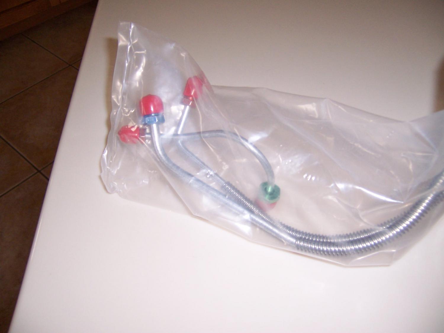 2 piece rear axle set for 68-72 Chevelle, as well as 70-72 Monte Carlo. 3 piece front set for power disc brakes on 68-69 Chevelle, GTO, and 442. All new in the unopened packages from Fine Lines in Ohio. I know the complete front brake lines consist of more than 3 pieces, but this is what I have. All 5 pieces are priced less than what the rear set alone sells for now, so you're essentially getting the 3 front pieces for free. $35 plus the ride.