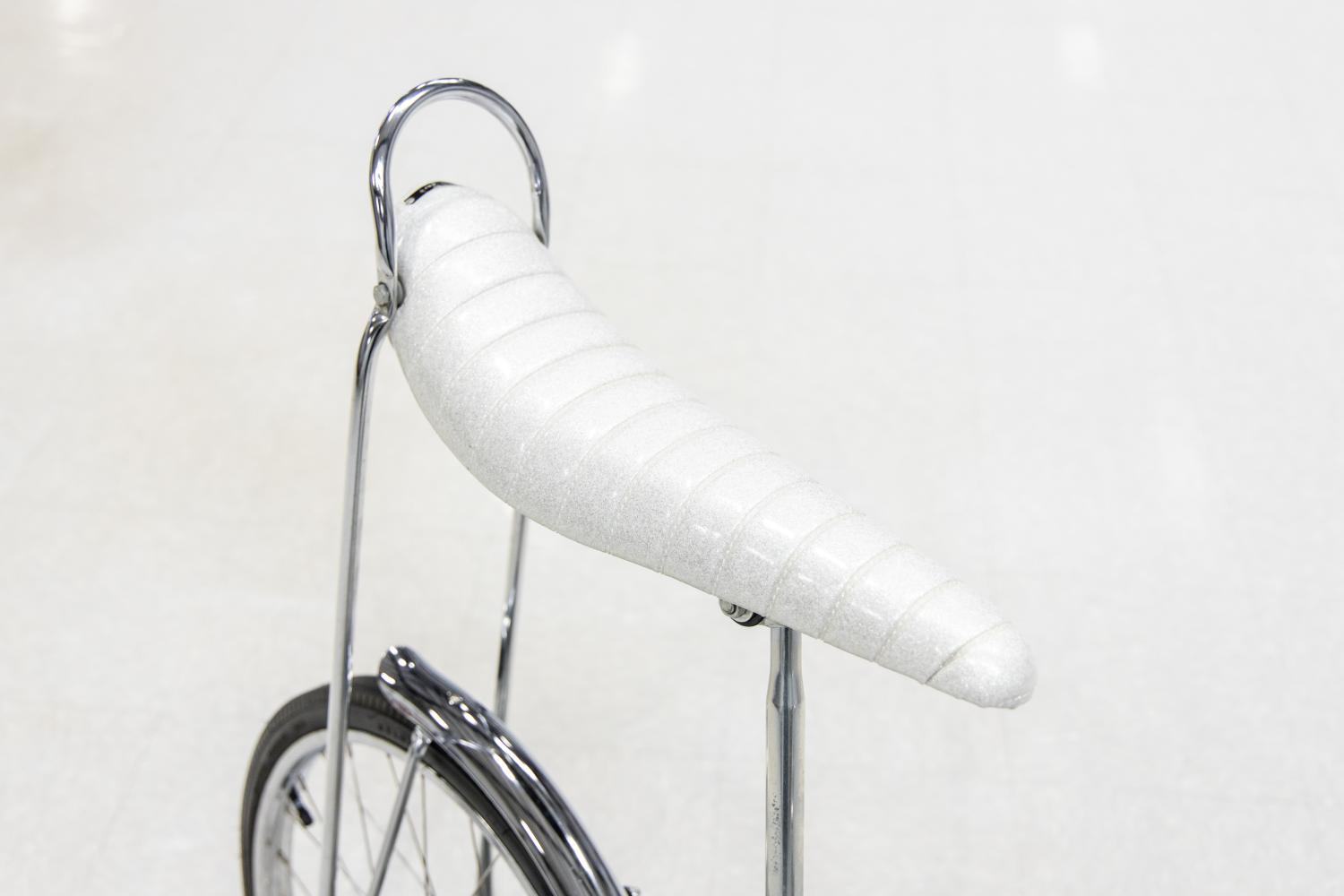 The bicycle is accompanied with a reproduction Captain Kangaroo stand up display. In the late 1950's, the Schwinn Bicycle Company partnered with Captain Kangaroo to boost its dominance in the child and youth bicycle market. Beginning in 1958, Schwinn became a key sponsor of the show, with Bob Keeshan promoting Schwinn bikes to young viewers. He would often declare, “Schwinn bikes- the quality bikes-are best!” and “Prices slightly higher in the South and the West”. The campaign proved successful, increasing Schwinn's market share throughout the 1960's.