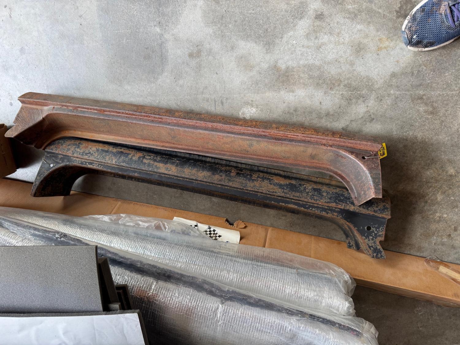 I HAVE A PAIR OF ORIGINAL GM NOS ROCKERS THAT FIT 67- 72 TRUCK OR K5 BLAZER. THEY DO HAVE SOME SURFACE RUST BUT NO HEAVY PITTING. i WANTED TO SHOW PICTURES AS THE ARE. I THOUGHT ABOUT GLASS BEADING THEM AND REPRIMERING THEM BUT THOUGHT THE BUYER WOULD RATHER SEE THEM AS THEY ARE. IF YOU HAVE ANY QUESTIONS GIVE ME A CALL OR TEXT AS I AM NOT BY A COMPUTER MOST OF THE TIME $650.00 + SHIPPING