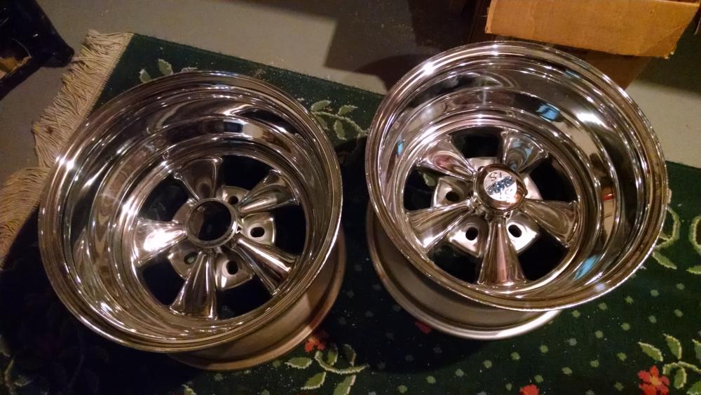 I found a pair of 15x10 Cragar S/S mags yesterday. They have a 3-3/4" backspace.