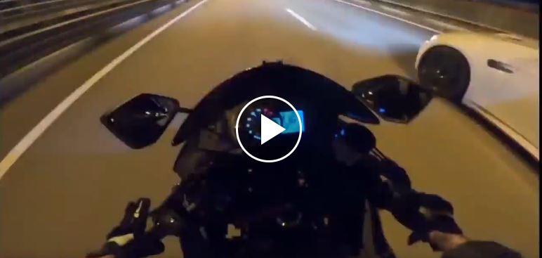 Trinity style from the Matrix....but it looks as though she had the front tire in the air and did not realize it until the dreaded death wobble set in.