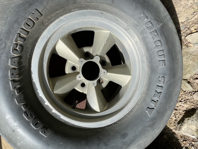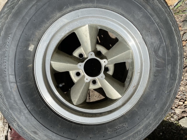 Up reasonable today. 2 are 14x7 one is 14x6 an has some curb damage. Owner through it in. But the 2 14x 7 are in nice condition. I think they will clean up they have the gold center. They were on a plum color 67 camaro. The only identification i see is M/T on backside.