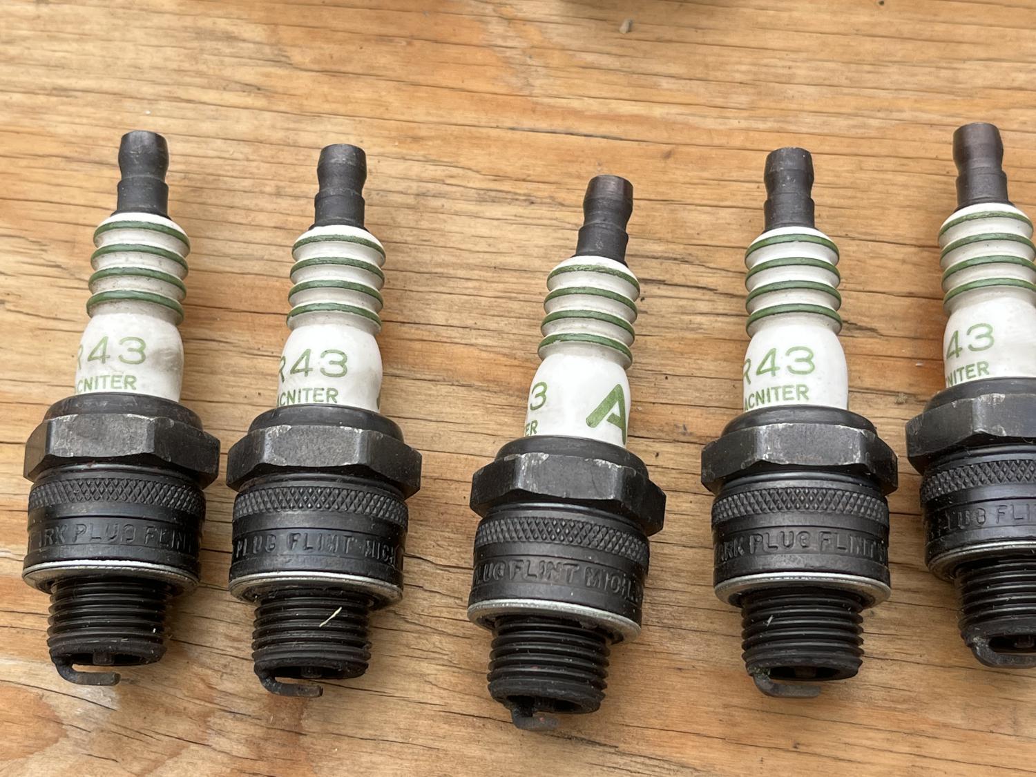 They are early factory assembly line installed take out plugs I was told - the original owner had, I'm also told, two LT-1 cars, one a 70 Z/28 Camaro and a 70 Corvette and was meticulous about their maintenance, such that he'd replace wearable items, but also keep them, "just in case". Anyway, here these are and some of the boxes are even numbered with which cylinder they were from. Interestly, there's one 45S in two boxes and two of them in the third box for a total of four 45S plugs. So, two and half sets of used R43 plugs 5569992 (20 pieces) And one half set of used 45S plugs 5612171 (4 pieces) I have heard that you can clean sparkplugs, so maybe that's what they were saved for, anyway, HARD to find original four thin green line plugs available here. And likely useable? Or at least for display maybe... See detailed photos for conditions below - includes the boxes too, of course. $240 PPG shipped to the US = that's only $10 per plug! Selling as a lot. Cheers all, Anthony |
