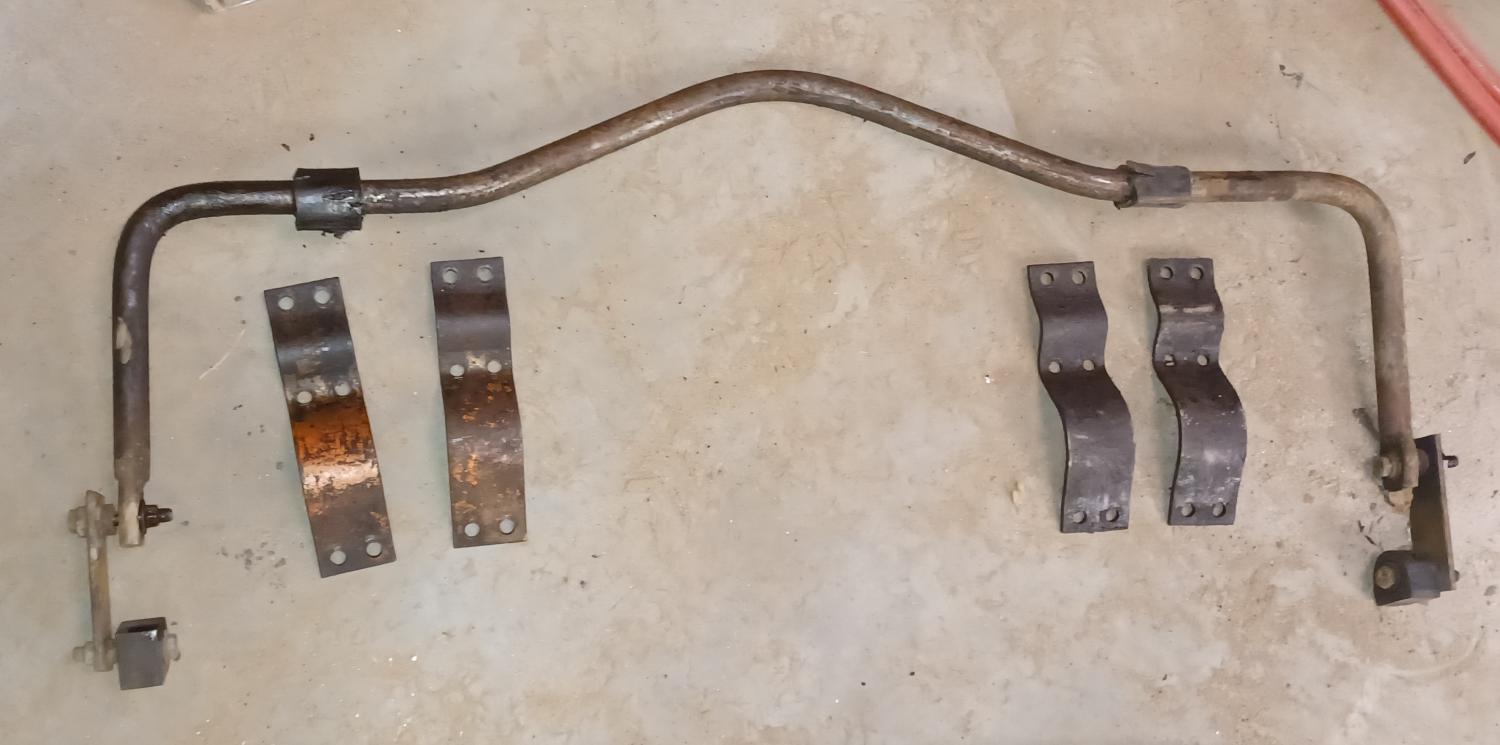 Hello all, I wanted to check and see if anyone knows the year and maker of this rear bolt on sway bar. It is 36 inches wide from outside of link mounting holes on bar. Clamps to a rearend housing using four 5/16 bolts to clamp the sway bar and two longer 3/8 bolts to clamp to the housing. Appears there are some small brackets for the body attached parts missing. one of the clamp brackets has red or orange paint that appears to be original, maybe Ansen or other aftermarket vendor? Any help/info would be appreciated, thanks Andy