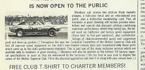I have a couple newsletters from '69 along with the welcome letter (I had Joel sign it at SCR6), the patch and the mylar metallic decals in a Motion Supercar Club envelope post marked in 1969......