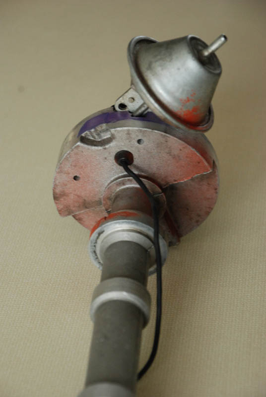 [ QUOTE ] vacuum unit marking [/ QUOTE ] Are you sure that "J" is not a "4"...??? Many times the vacuum can was marked with the initial timing setting in crayon...4* is a common marking. I believe the purple paint is an inspection mark...other experts may chime in. wilma [/ QUOTE ] Ah yes it does look like a ''4'' now that I look at it at another angle.