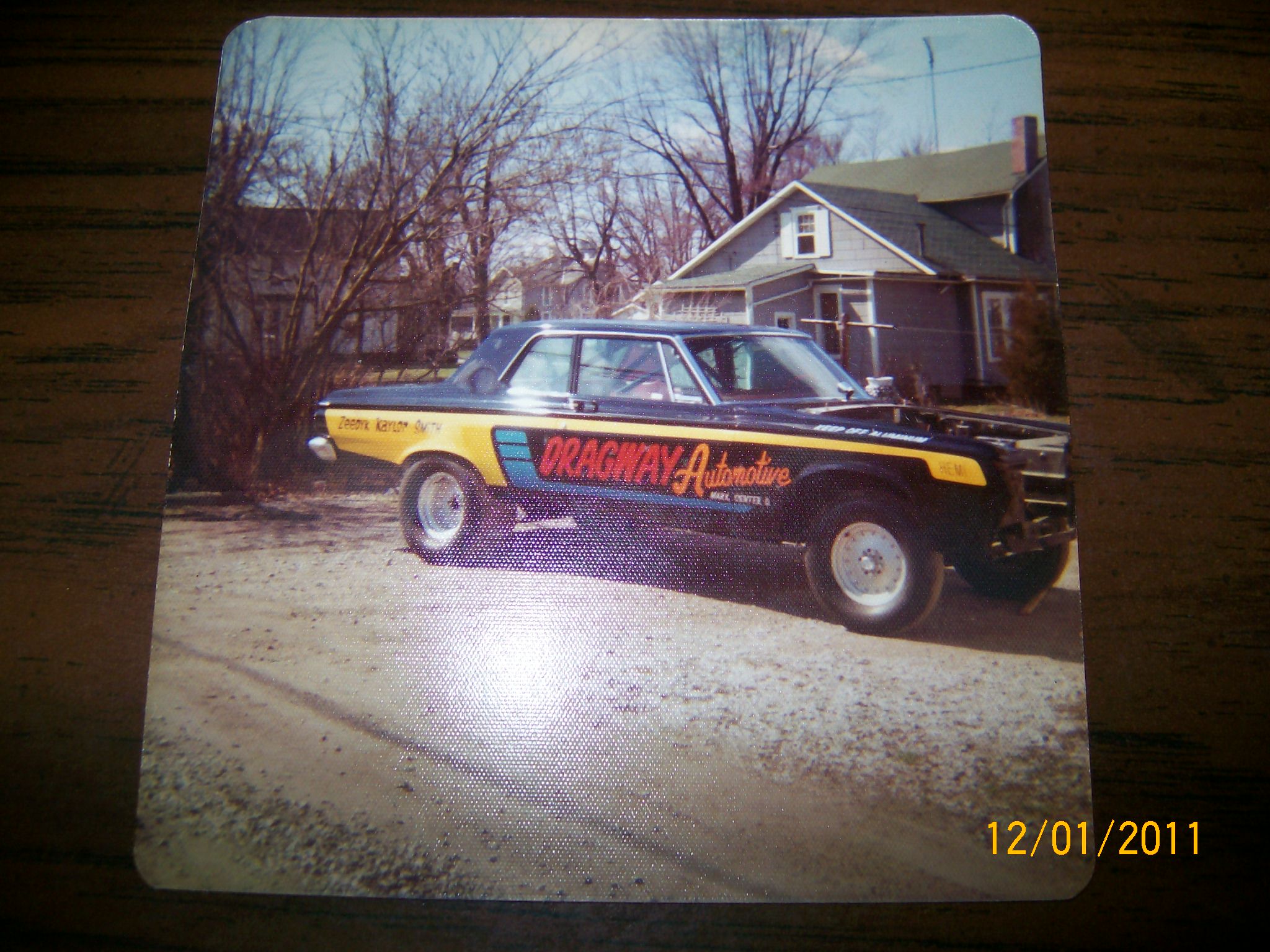 Here are a couple of pictures of cars Dad lettered or striped. The Chrysler had a aluminum front end. He also did gold leaf and chroma-graphics on several cars snowmobiles and others. Dad said "HI" John. I will add more as I go through them.