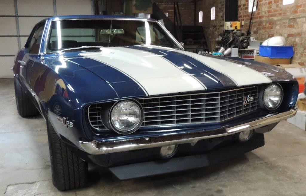 Been working on a friend's 69Z as a favor to another friend. The dusk blue paint on Rick's Z is absolutely stunning BASF base/clear. However, when it was put back together, they did not paint the grill silver. Hey, at least they painted the surround body color. There was a very small dent in the RF fender that needed PDR. However, the grill would have to come out to get to the back side of the dent.