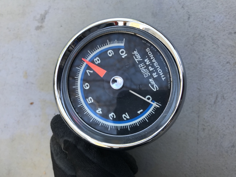 3. SOLD A likely NOS 10K Sun Super Tach 10,000 10000 blueline model SST-801. comes with a perfect face, chrome cup, and the curved steering column mounting bracket. No wiring, box, or paperwork - the redline spins smooth as you'd expect of an NOS item, but I'm not calling it NOS. I was asked to open it / it's still as-is but I'd be surprised if it didn't function as intended really. There's two ink stamps, "552" and "SUN 64" - maybe the tach is from 1964? Either way, it's certainly unused and clearly NOS. I dug up some universal wiring and will include all as shown in my other ad; go to that other ad for more photos. $300.