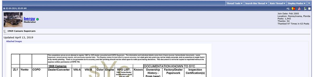 All considered, best grab an NCRS Report to confirm shipped to Yenko as it could be another incorrect Vin recorded by Yenko? ![]() ![]() ~ Pete .