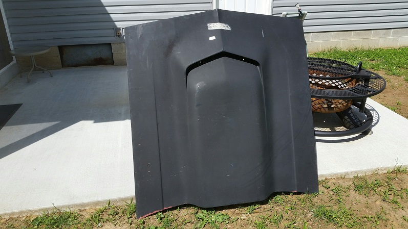 SOLD...I believe this is an early '70s fiberglass L88 hood. This may be the same as what was used on the Motion cars. Chopper gun fiberglass with inserts to bolt to hood hinges. This hood has never been installed on a car as far as I can tell. It's in very good condition with a few small chips. No holes have been cut for hood pins. No cracks that I have seen. I can deliver to MCACN. More pictures available. $900 SOLD