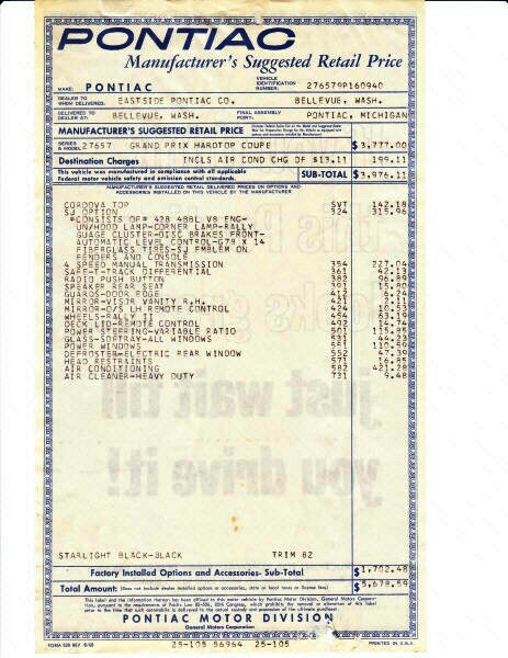 ----Grant,,,Is that a saddle interior. Would love that if it was leather but I don't see it on the window sticker. Black with saddle leather 4-speed 69 SJ, oh yah!....Bill S