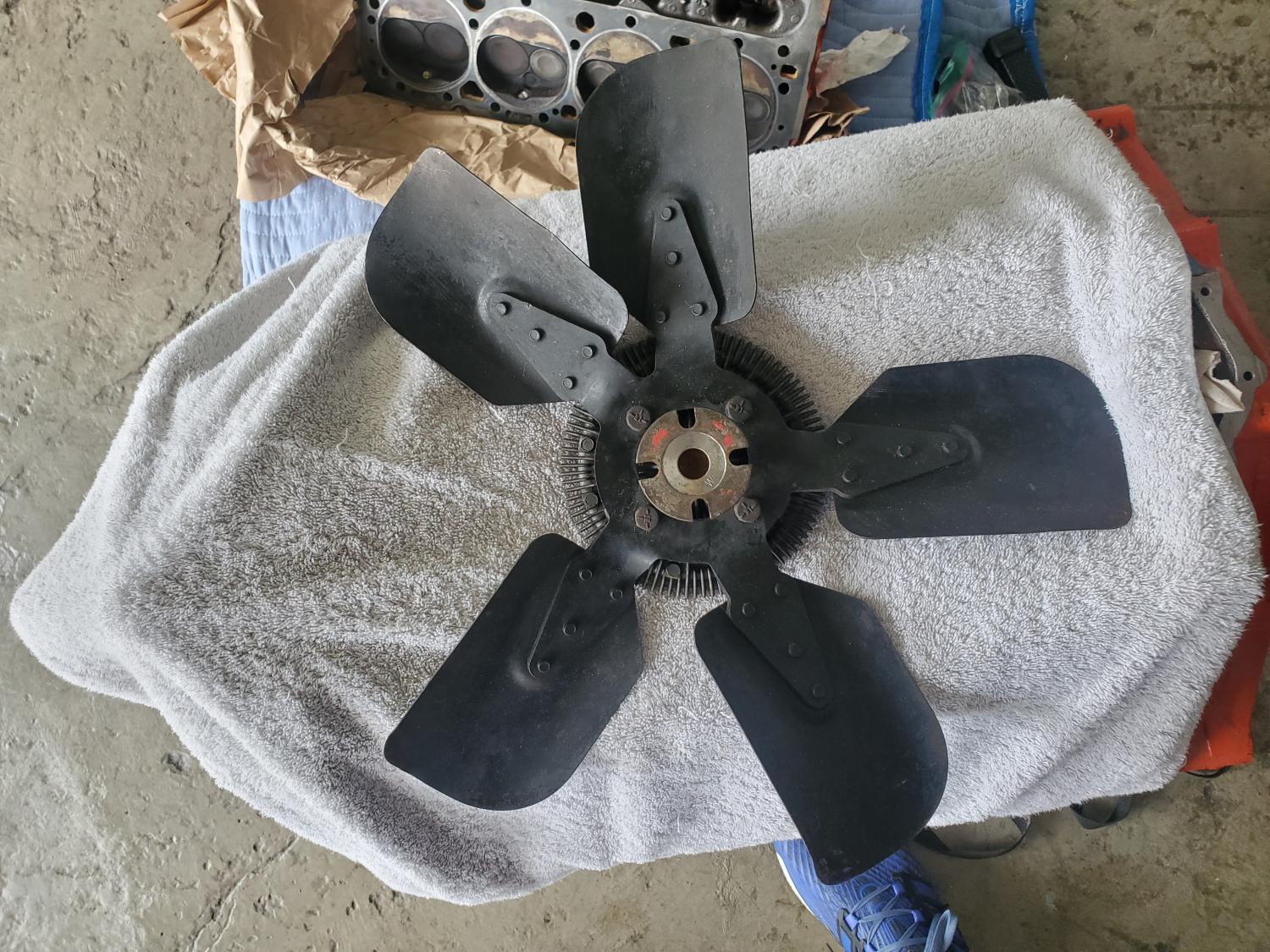 ----I don't know about the fan, although it looks 70 Chevy style, but the clutch is an over the counter job (if you didn't already know)......Bill S