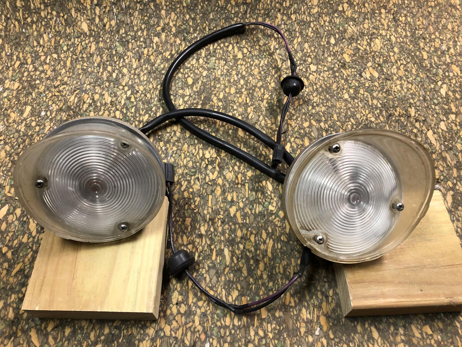 Looking for a pair of front parking lamps with good wire harnesses. the housings are not important. Just the sockets and sleeves that cover the wires.