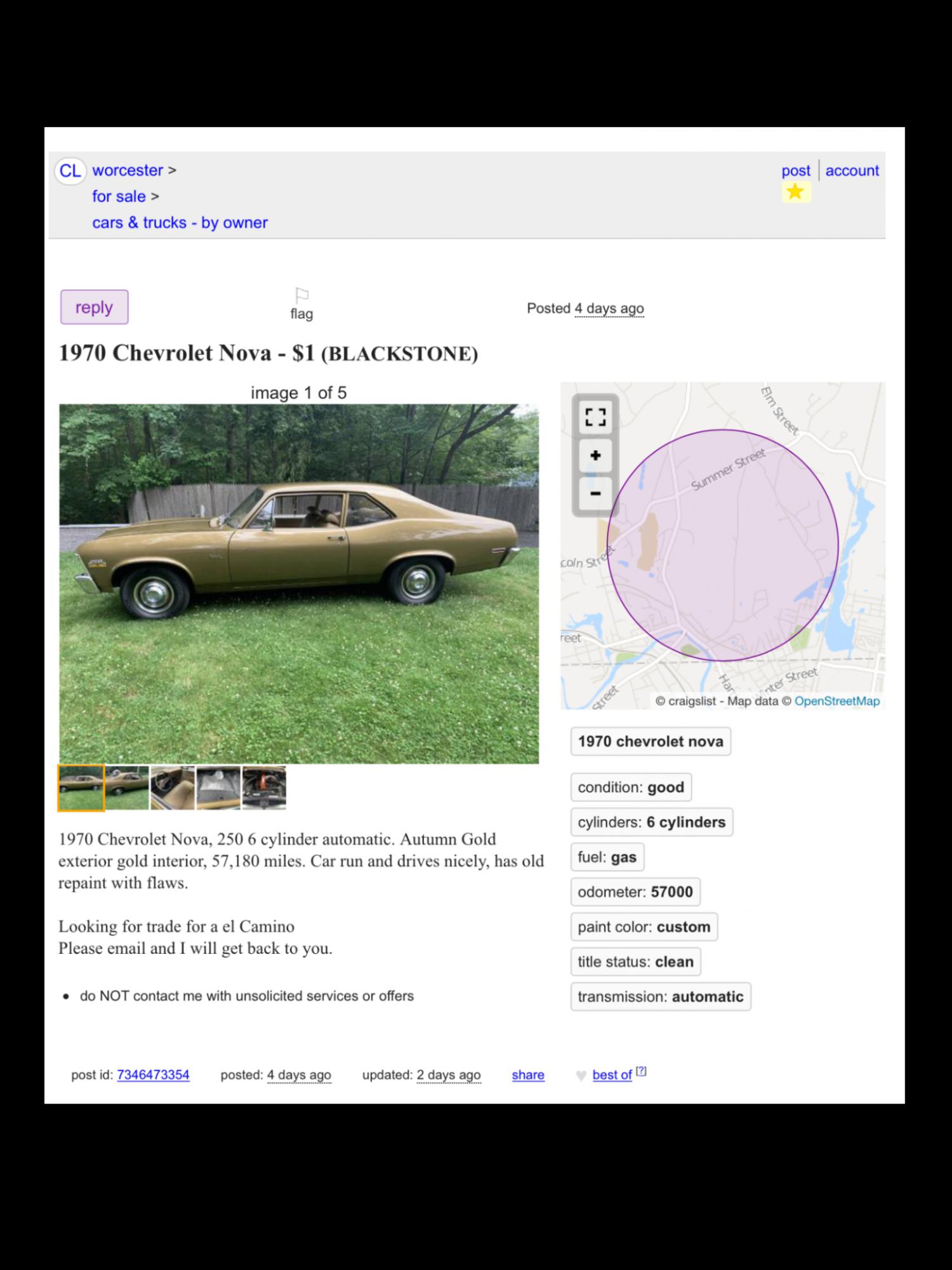 Looks like a pretty clean Nova, not sure if it is a trade only thing but could be a worth someone's time....