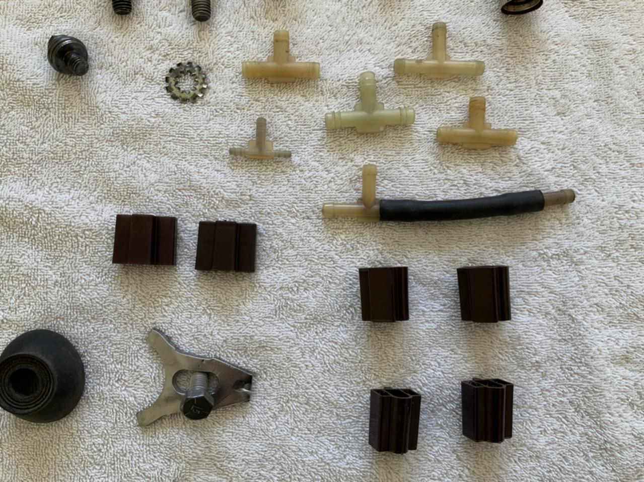 Going through my stash other day, found some more stuff that I did not know that I had. I can combine shipping on multiple items and you can feel free to make me offers, or maybe a package deal on all of it. .Various factory ties: $7.for the medium size (all large ones Are sold pending payment)$5. Ea. on small ones. Large tie back W/nipple is SOLD .Small block Chevy dip stick tube, don’t know what year $10. .Power steering pump stud, original finish and very nice. $15. .3/8 stud, multiple applications. Nice original finish. $5. .Chevelle cowl washer wiper hose clamp, very nice original finish. $15. .NOS 4-speed bell crank adjustable stud. $20. .Multiple factory translucent tees, the Small tee part number is p-87223-11,(Small one has sold)The other tees look to be 5/16ths. With a couple having the bmc markings. please see photos for size. $5. Ea. .Bench seat side hinge covers “barbed” attachment escutcheons, also very hard to find. (7) $15. For all 7. .69 Chevelle(May fit others as well).rubber quarter panel plug, with the numbers 2102 in it. nice and soft $15. $7.75 USPS Priority mail. Payments to made it through PayPal via friends and family so that I don’t get dinged on fees.