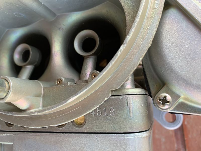 First one is an assembly-line correct unit dated '924' or 4th week of February 1969, to suit a '69 Z/28. Has the correct metering blocks 4519 and 5583. It has been restored and rebuilt by Eric Jackson, whose workmanship needs no introduction on this site. Carb is still in the box Eric shipped it to me in, was test run and then drained of fuel before mailing. Second one is a service replacement unit dated '2288' or 228th day of a year ending in '8'. Could be 1978, 1988 etc. It is complete and was on a runner when I bought it, but has sat a few years now so would suggest as a minimum it would need a kit put through it to replace gaskets, filters etc. Differences from the assembly-line correct 3-digit dated units include the thicker base plate and a straight nipple vacuum pull-off can. This carb has correct metering blocks 4519 and 5583 and both also have the list number 4053 on them. Asking US1500.00 shipped for the 924 and US550.00 shipped for the 2288, with payment via PayPal F&F please. Full disclosure, the 924's choke tower had been neatly drilled for squirter holes by a former owner; these were welded up as part of Eric's restoration but the repair area can still be seen, refer to before and after pictures below.